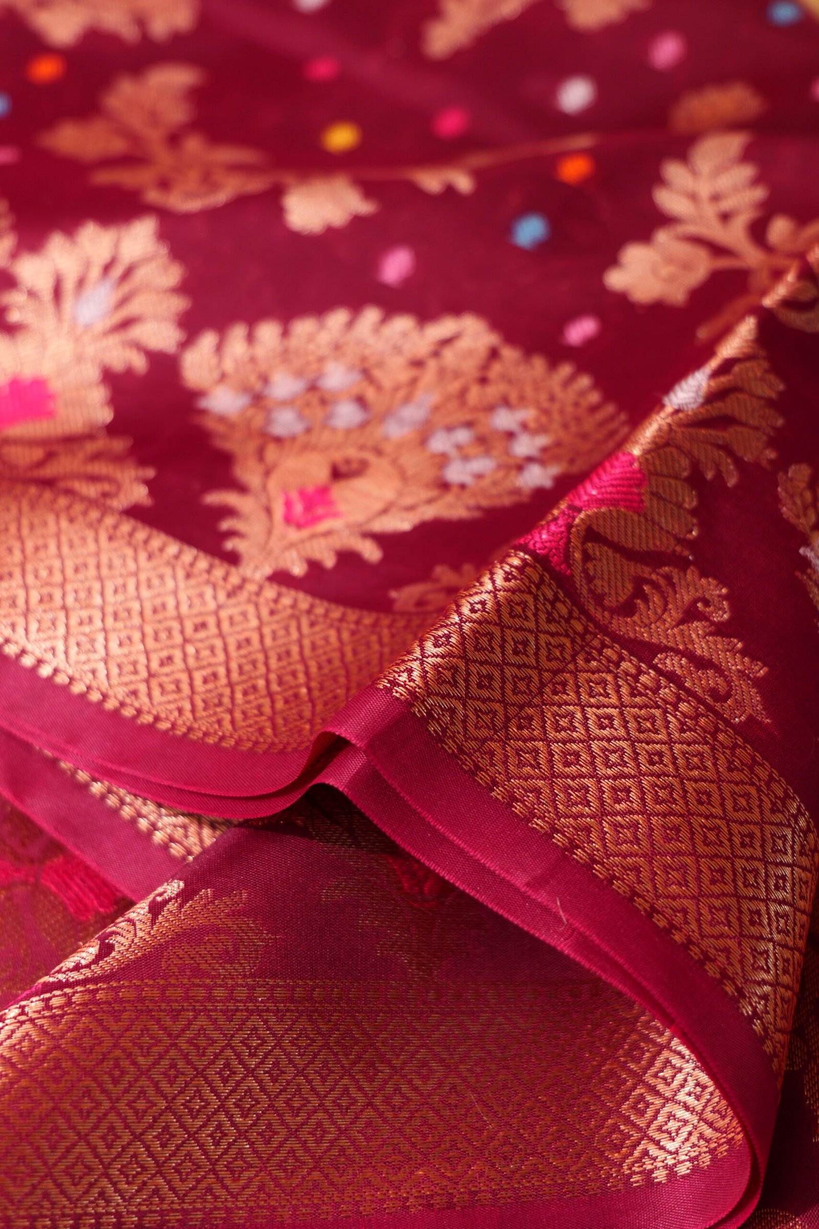 | Mauve colour Semi Silk Banarasi Saree with Golden Zari work and Meena & Jal work having Rich Pallu |